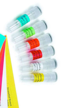 Etiquetas de laboratorio con formato para impresoras láser. Las etiquetas resistentes para láser son químicamente inertes y se adhieren firmemente a microtubos, tubos de ensayo, cajas de almacenamiento y portaobjetos. Son resistentes a disolventes orgánicos y agentes cáusticos. Son perfectas para identificar con precisión muestras importantes almacenadas a temperaturas moderadas de congelación.